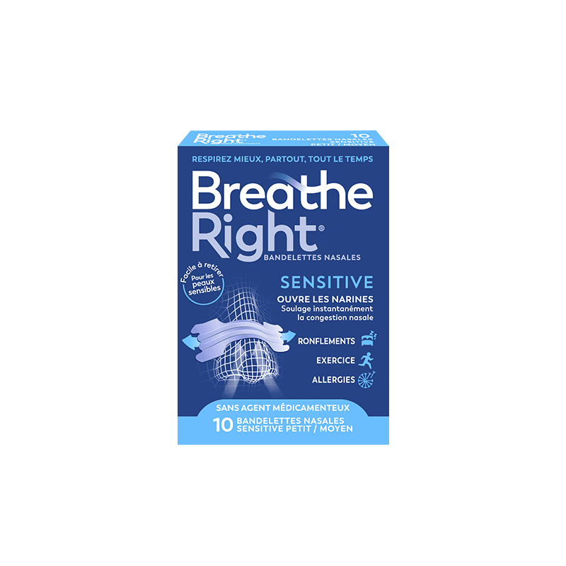 Bandelettes nasales original BREATHE RIGHT Sensitiv pour dégager les voies respiratoires.